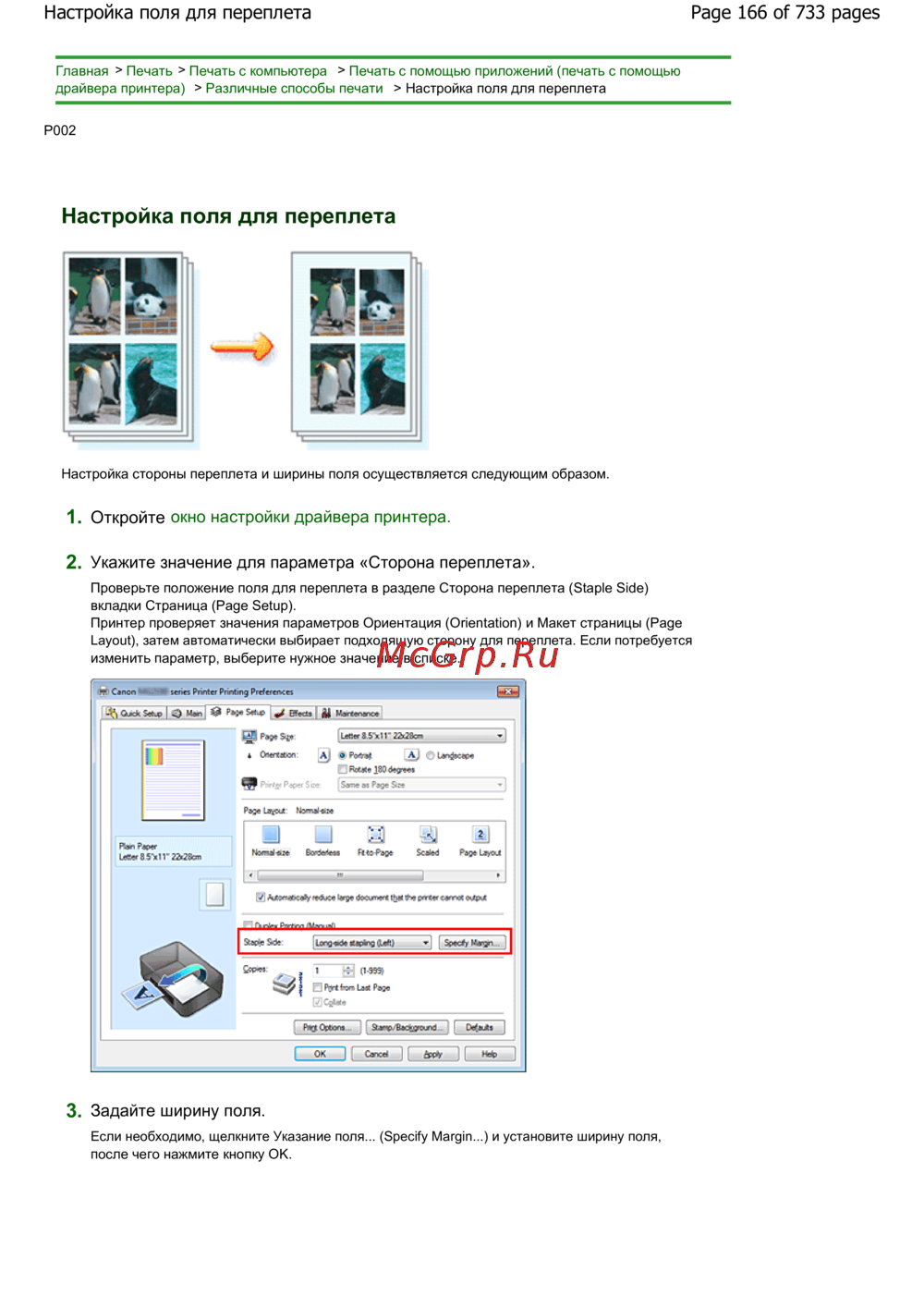 Canon Pixma MG2140 — настройка полей для переплета при печати с компьютера [166/733]