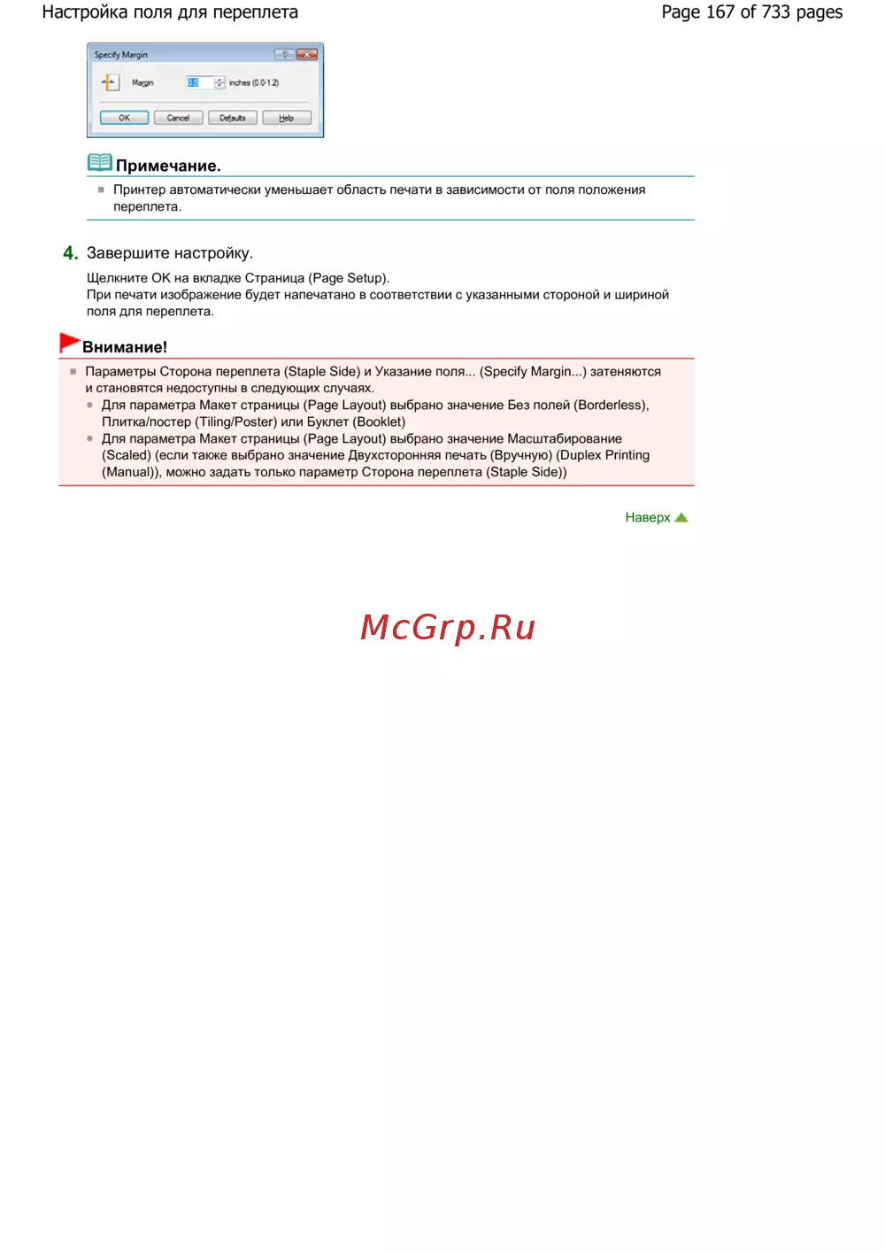 Canon Pixma MG2140 — настройка полей для переплета при печати документов [167/733]