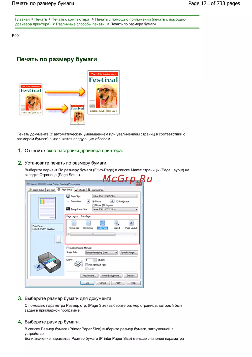 Canon Pixma MG2140 — как настроить печать по размеру бумаги для документов [171/733]