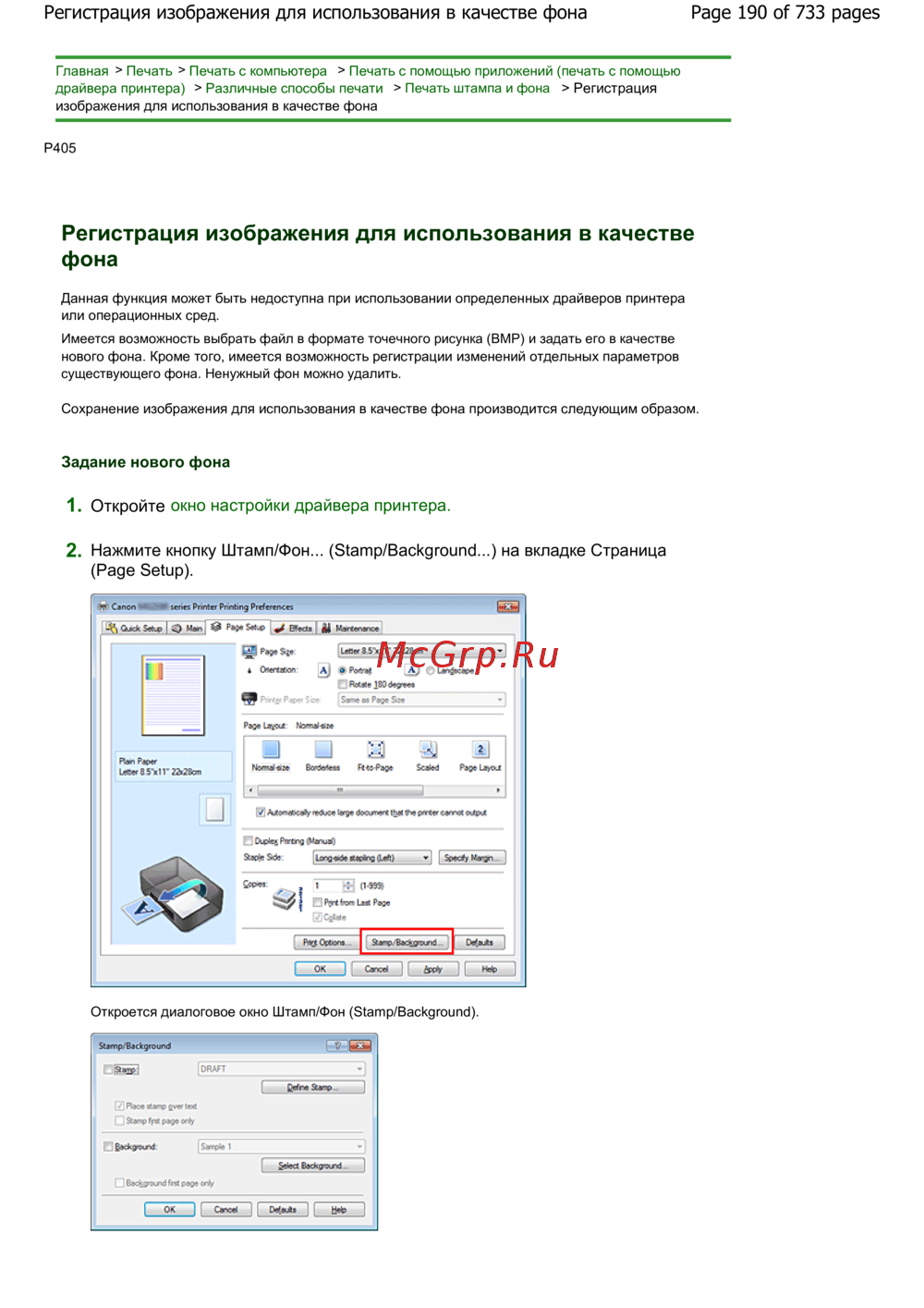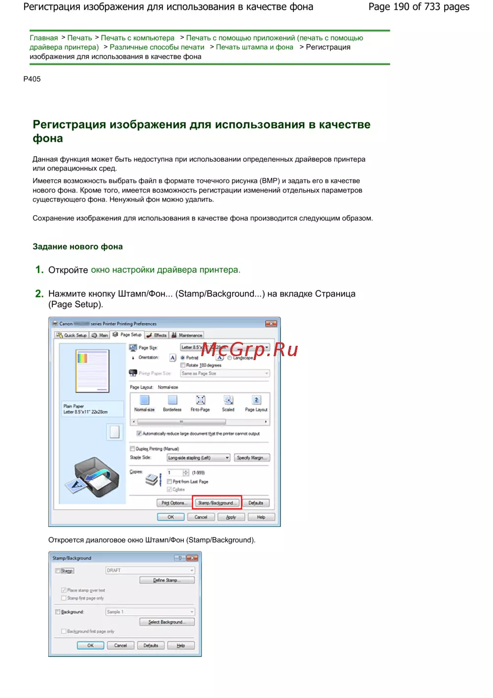 Узнайте, как зарегистрировать изображение в качестве фона для печати. Подробные инструкции по настройке драйвера принтера и изменению параметров фона.