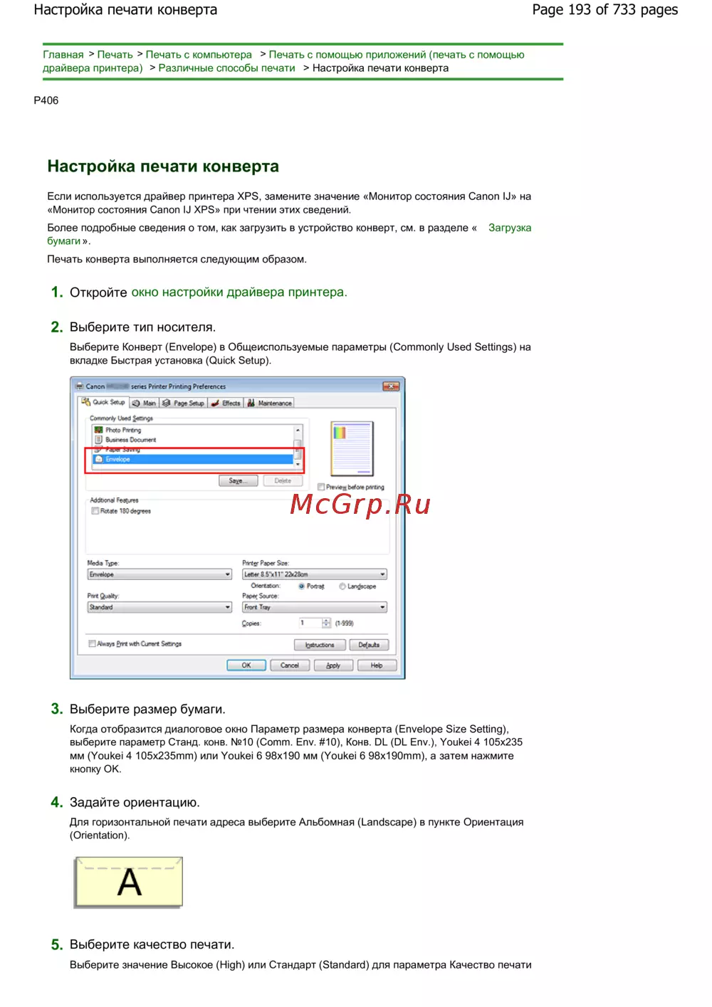 Canon Pixma MG2140 — настройка печати конвертов: пошаговое руководство [193/733]
