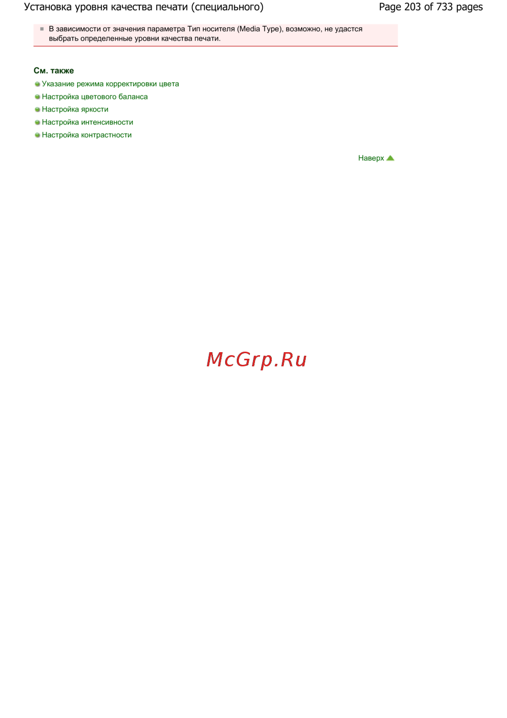 Page 203 of 733 pagesУстановка уровня качества печати (специального)