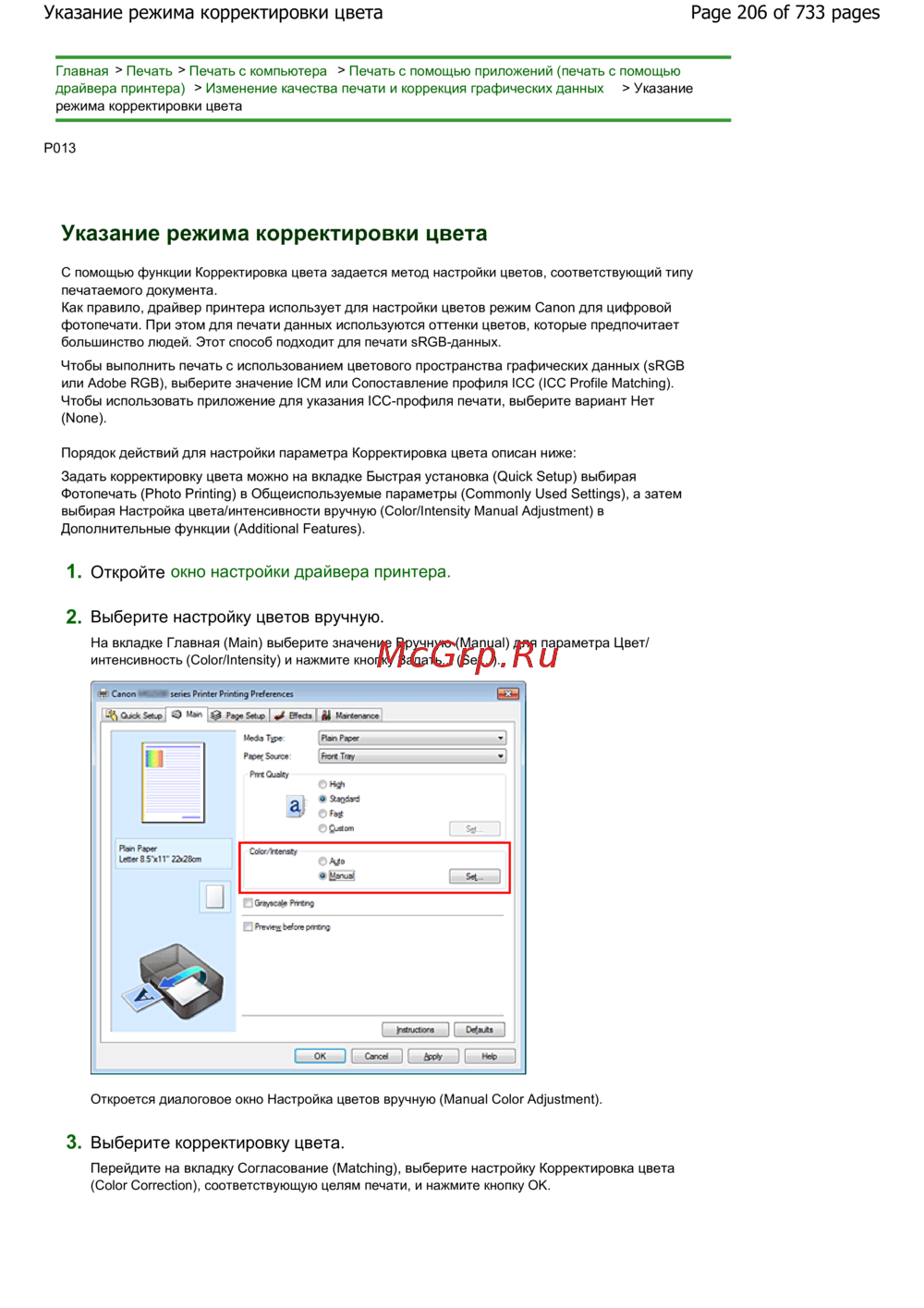 Canon Pixma MG2140 — настройка корректировки цвета для печати с компьютера [206/733]
