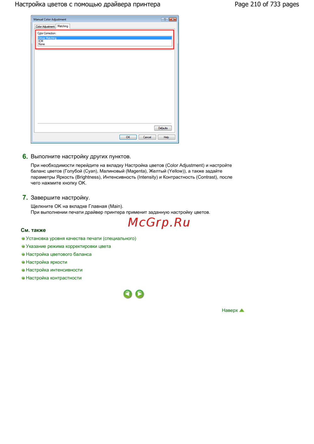 Page 210 of 733 pagesНастройка цветов с помощью драйвера принтера