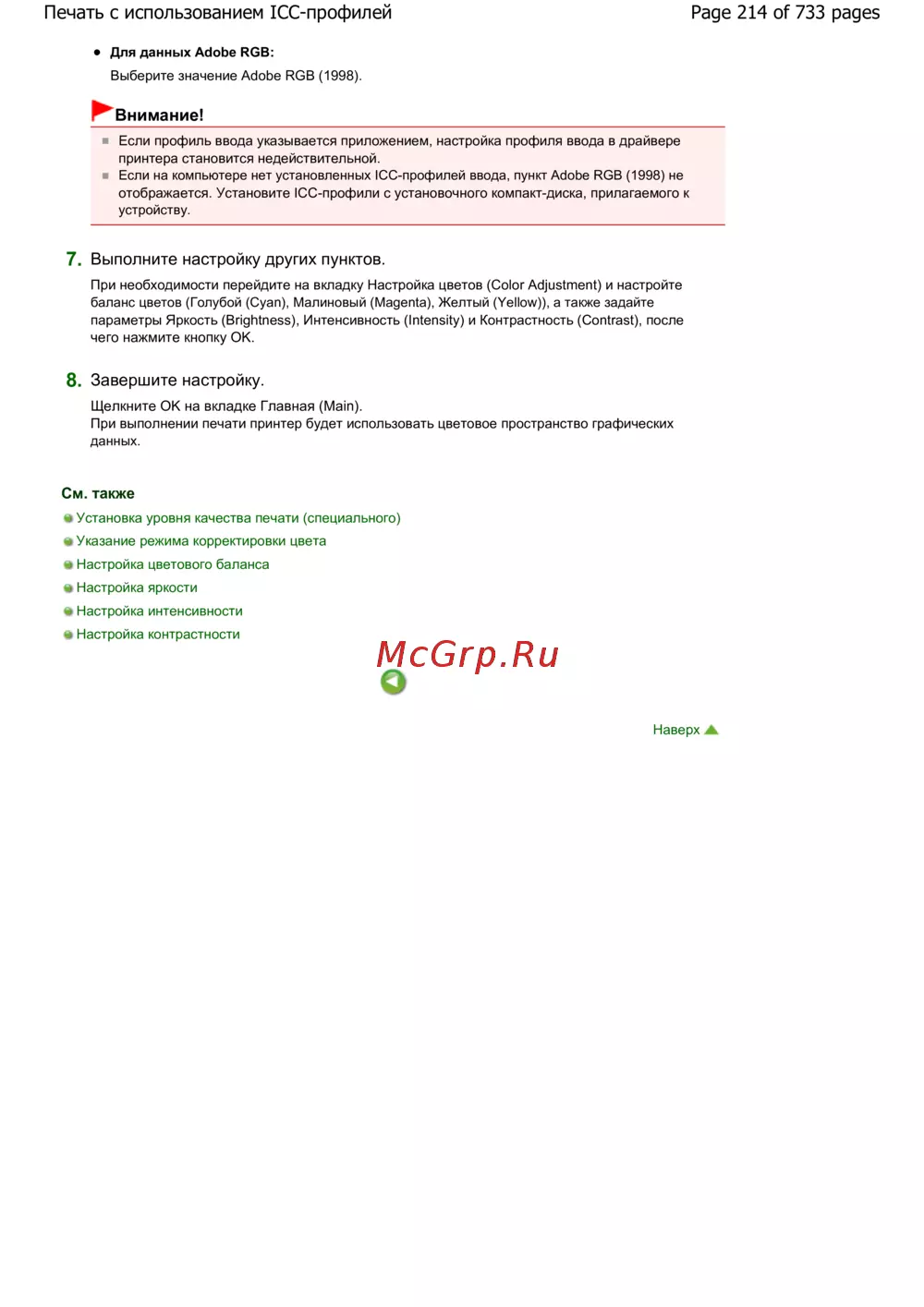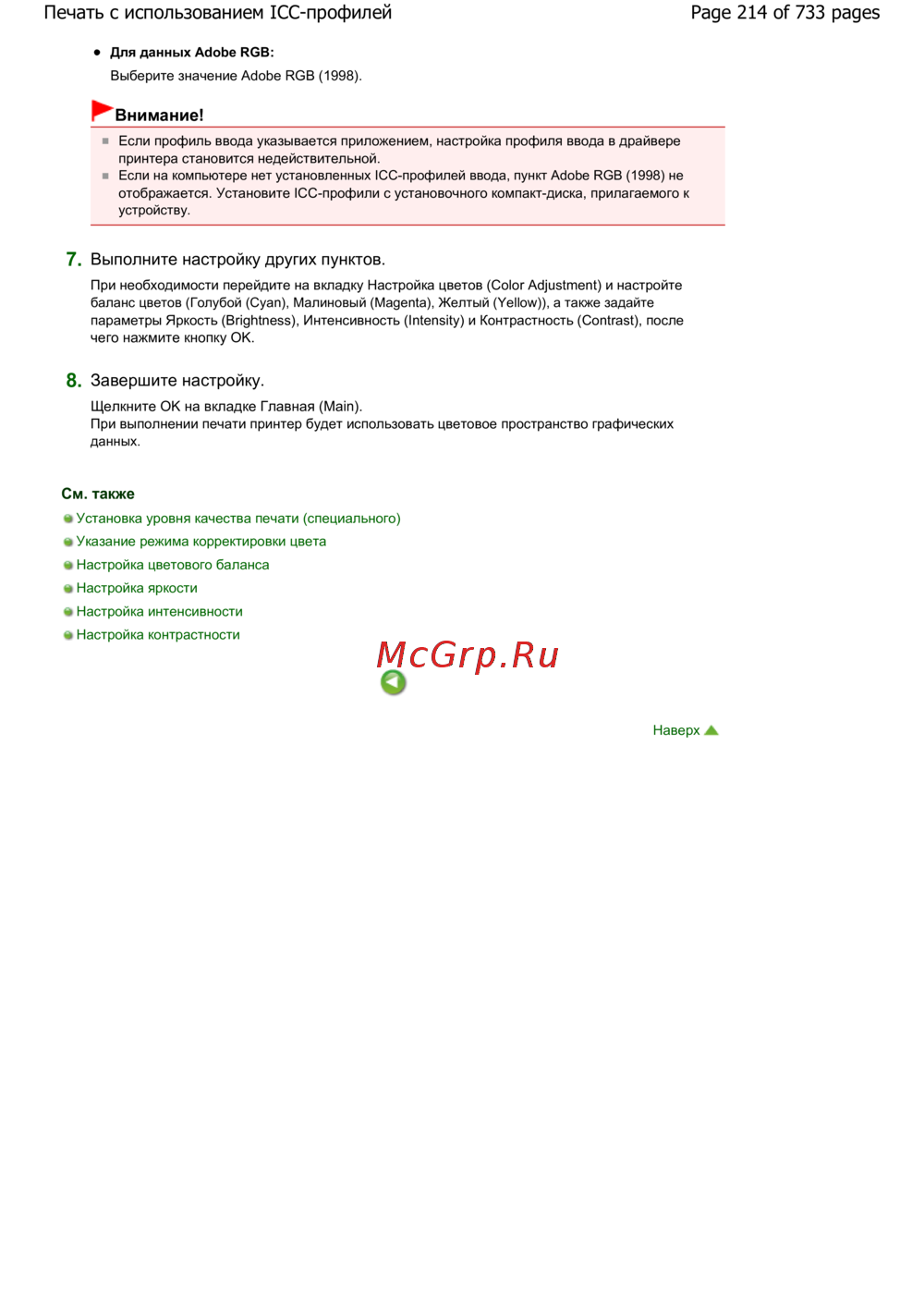 Page 214 of 733 pagesПечать с использованием ICC-профилей