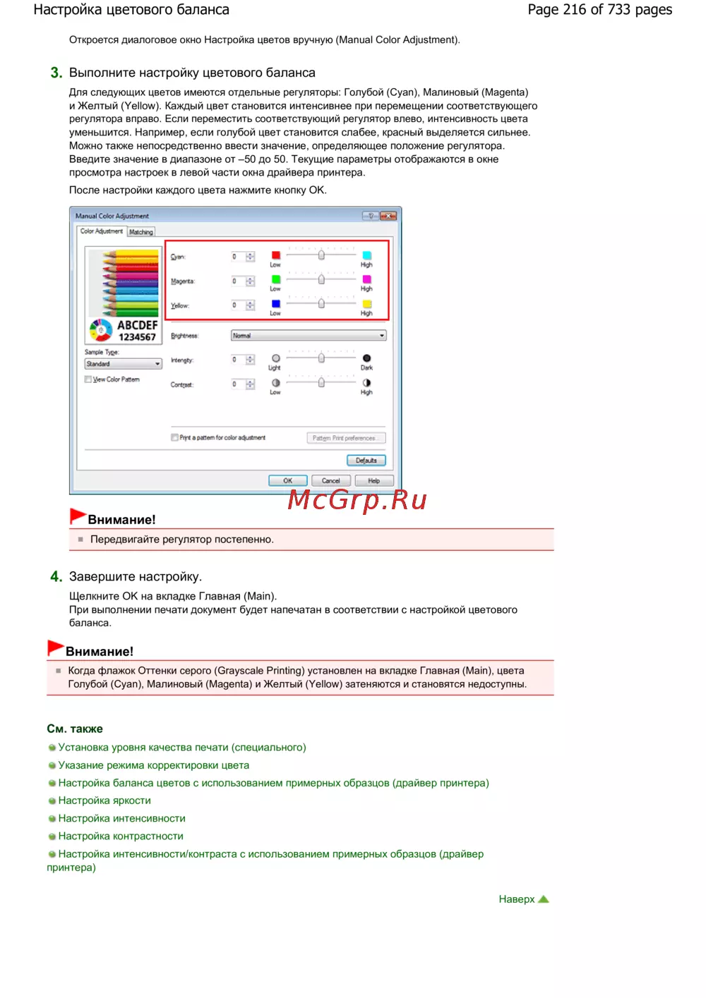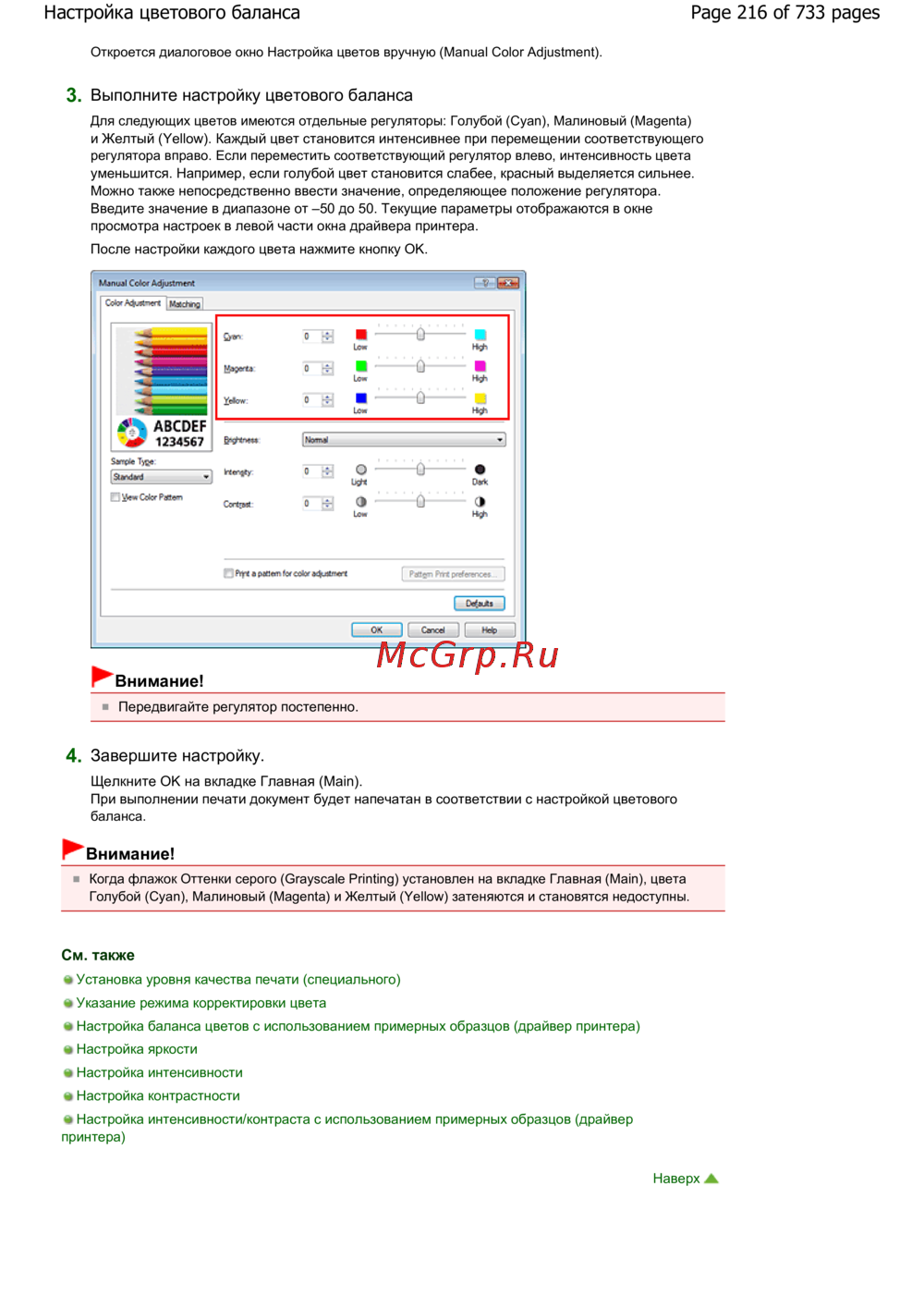 Canon Pixma MG2140 — руководство по ручной настройке цветового баланса для печати [216/733]