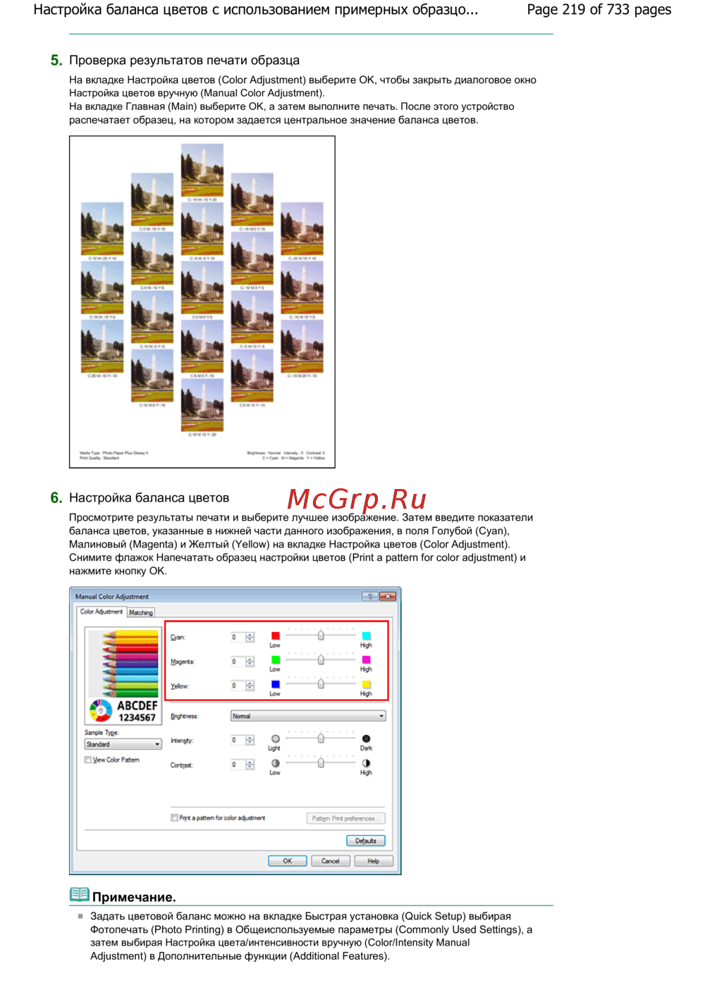 Canon Pixma MG2140 — настройка цветового баланса печати и выборка образцов [219/733]