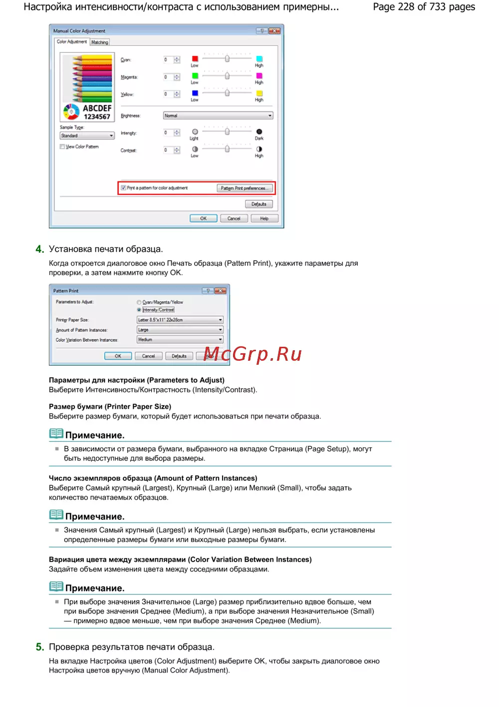 Canon Pixma MG2140 — настройка параметров печати образца для качественного результата [228/733]