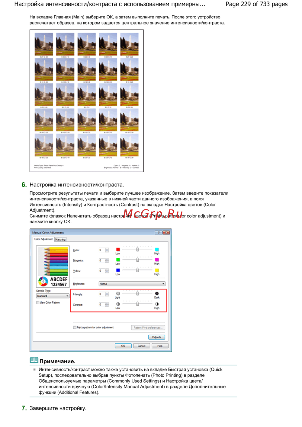 Page 229 of 733 pagesНастройка интенсивности/контраста с использованием примерны...