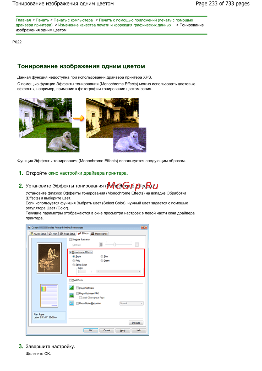 Canon Pixma MG2140 — как использовать тонирование изображений при печати [233/733]