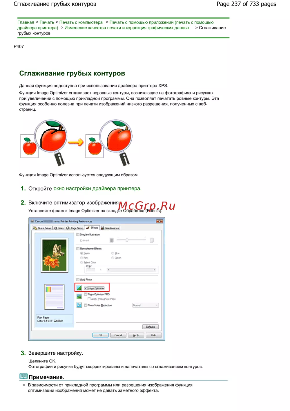 Canon Pixma MG2140 — оптимизация качества печати: сглаживание контуров изображений [237/733]