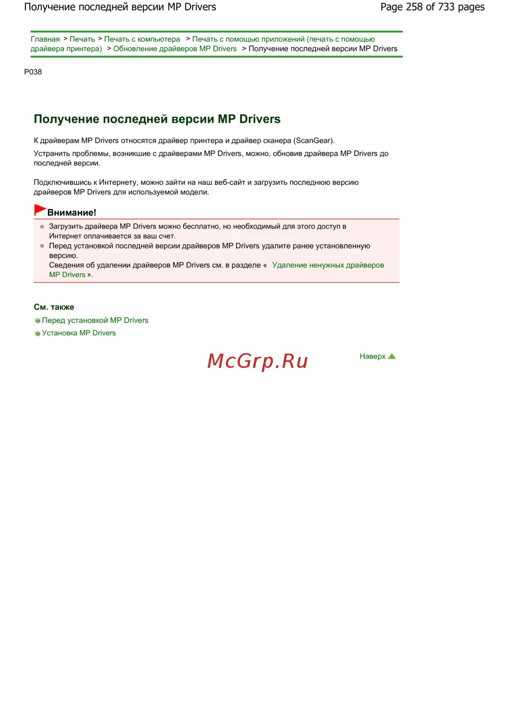 Page 258 of 733 pagesПолучение последней версии MP Drivers