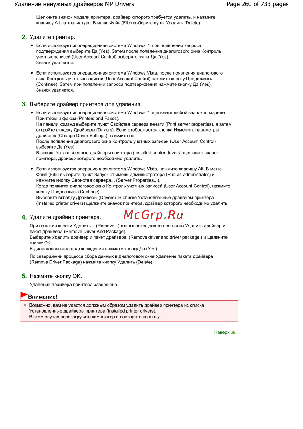 Page 260 of 733 pagesУдаление ненужных драйверов MP Drivers