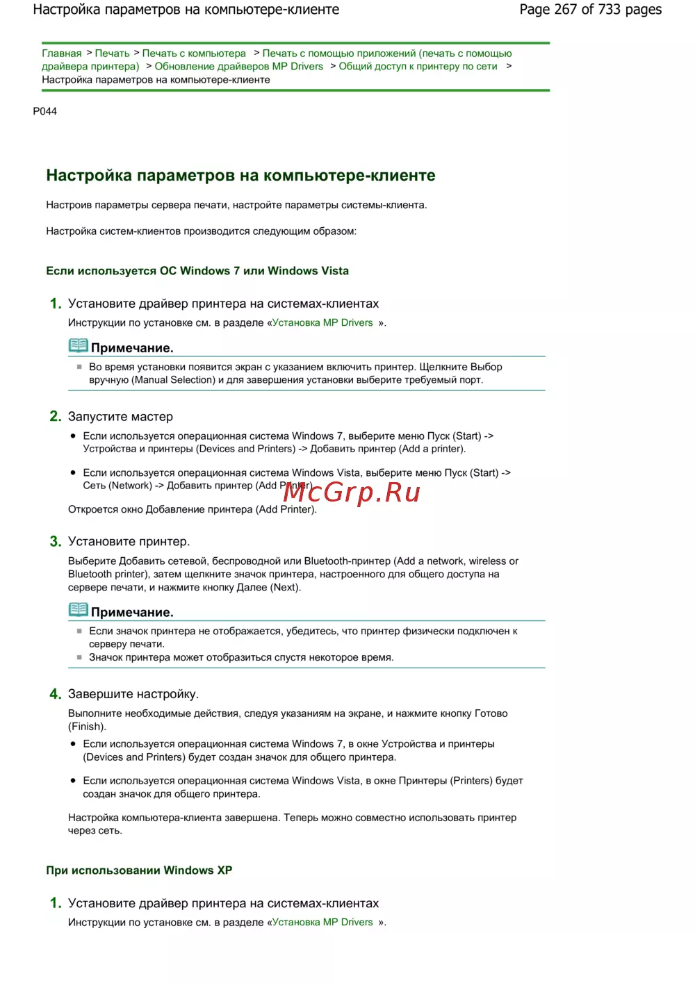 Canon Pixma MG2140 — настройка параметров печати на компьютере-клиенте в сети [267/733]