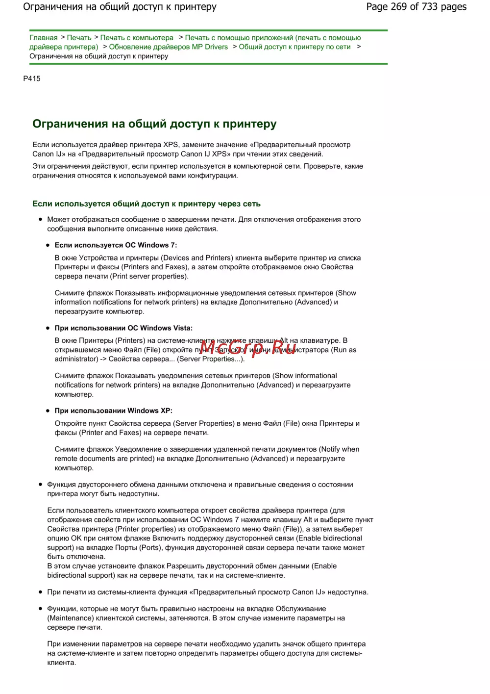 Page 269 of 733 pagesОграничения на общий доступ к принтеру