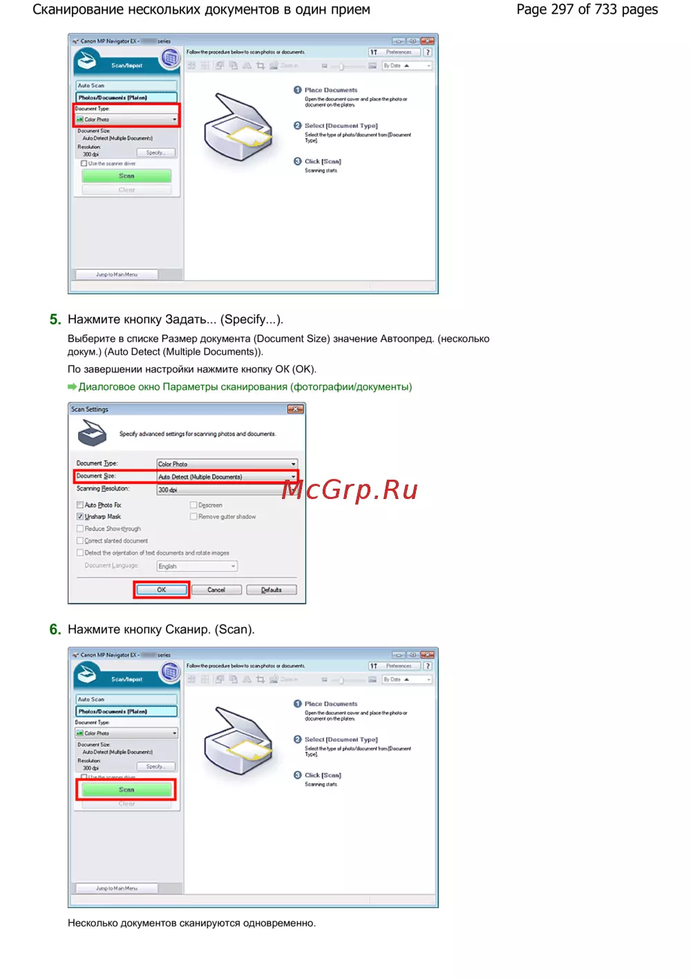 Page 297 of 733 pagesСканирование нескольких документов в один прием