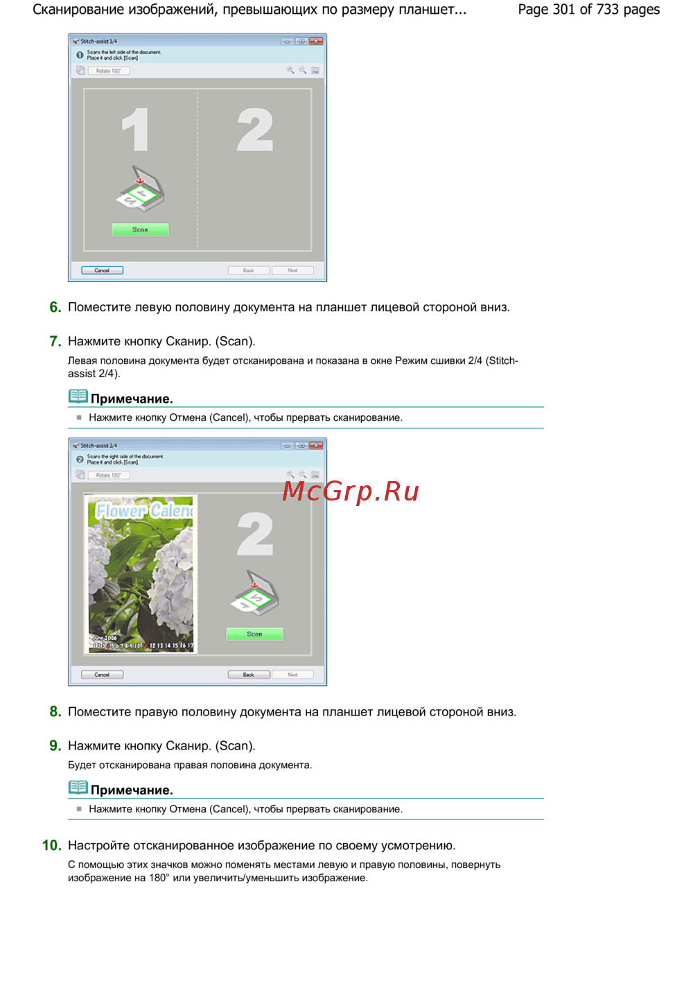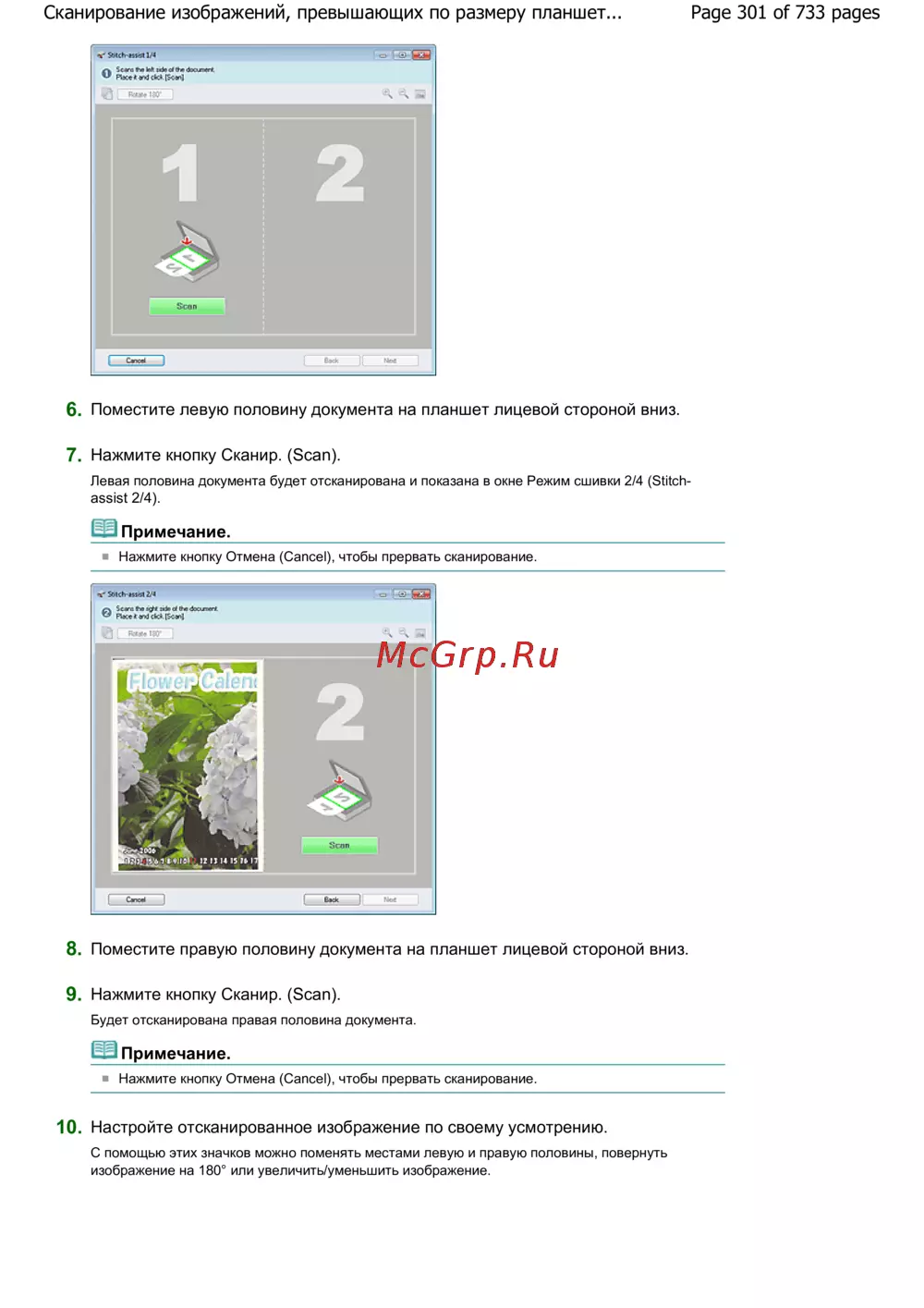 Page 301 of 733 pagesСканирование изображений, превышающих по размеру планшет...