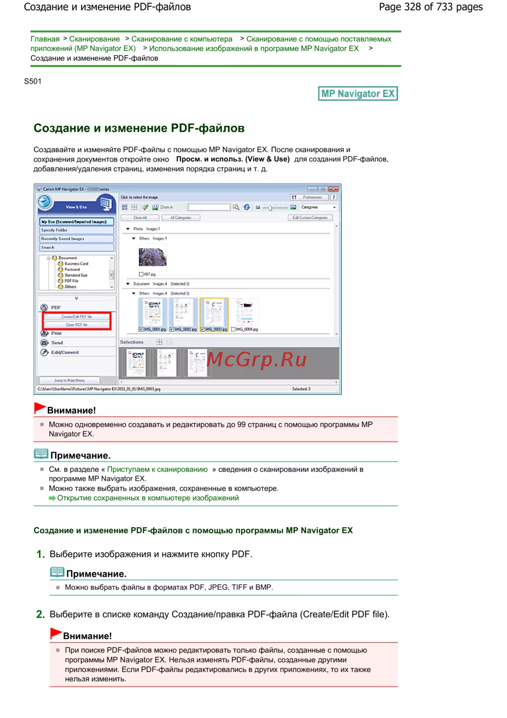 Создание и изменение PDF-файлов с помощью программы MP Navigator EX