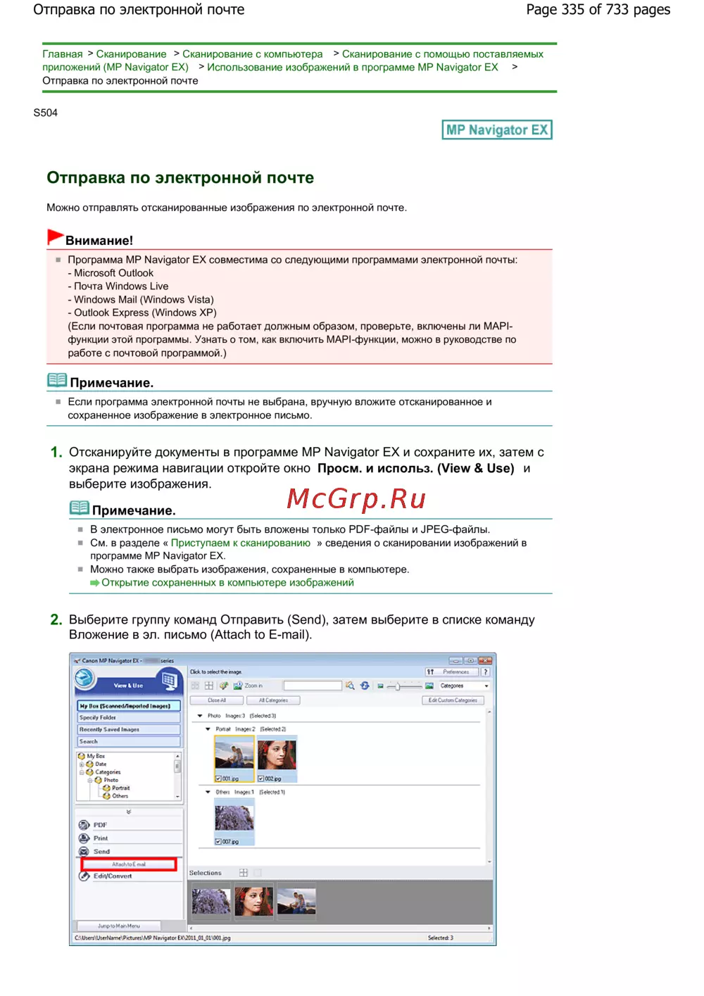 Canon Pixma MG2140 — как отправить отсканированные изображения по электронной почте [335/733]