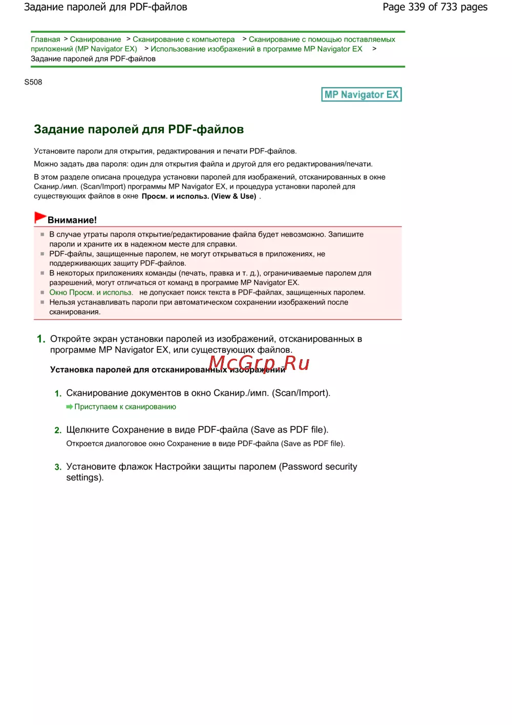 Page 339 of 733 pagesЗадание паролей для PDF-файлов