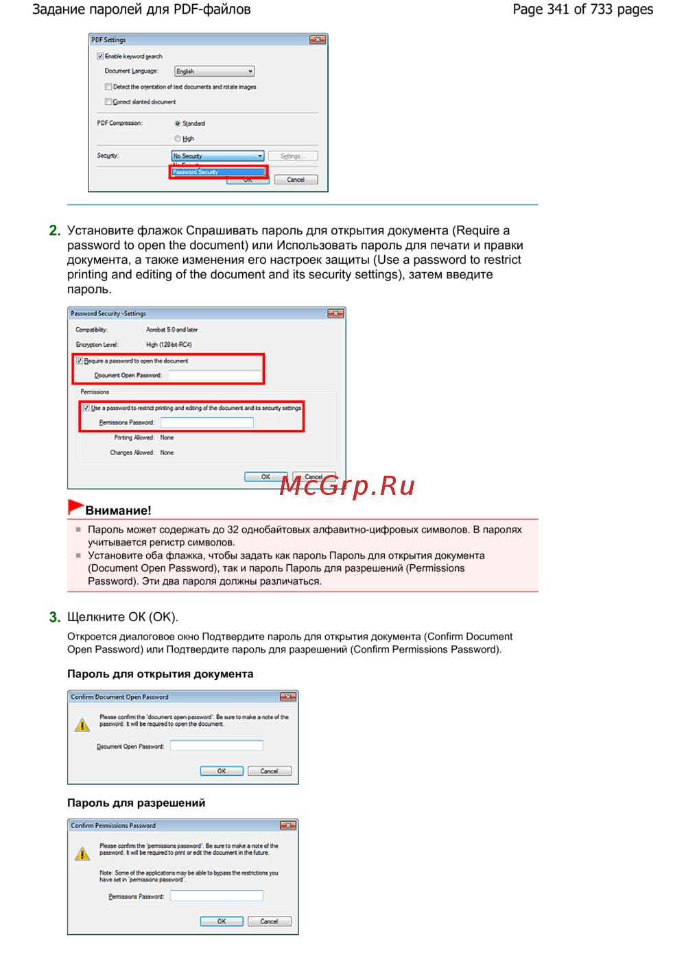 Page 341 of 733 pagesЗадание паролей для PDF-файлов