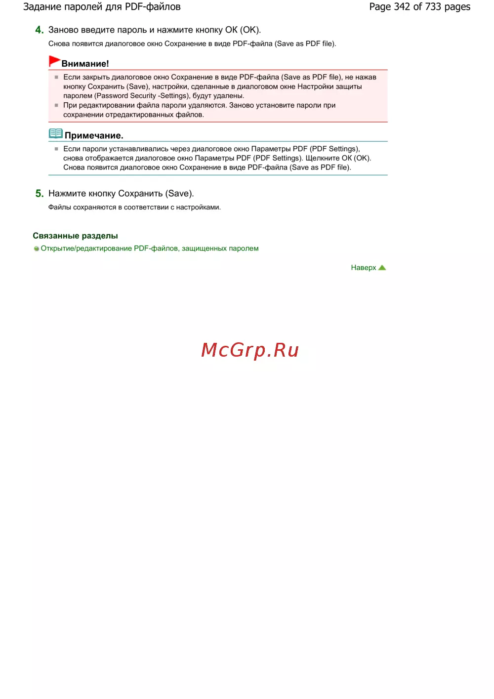 Page 342 of 733 pagesЗадание паролей для PDF-файлов
