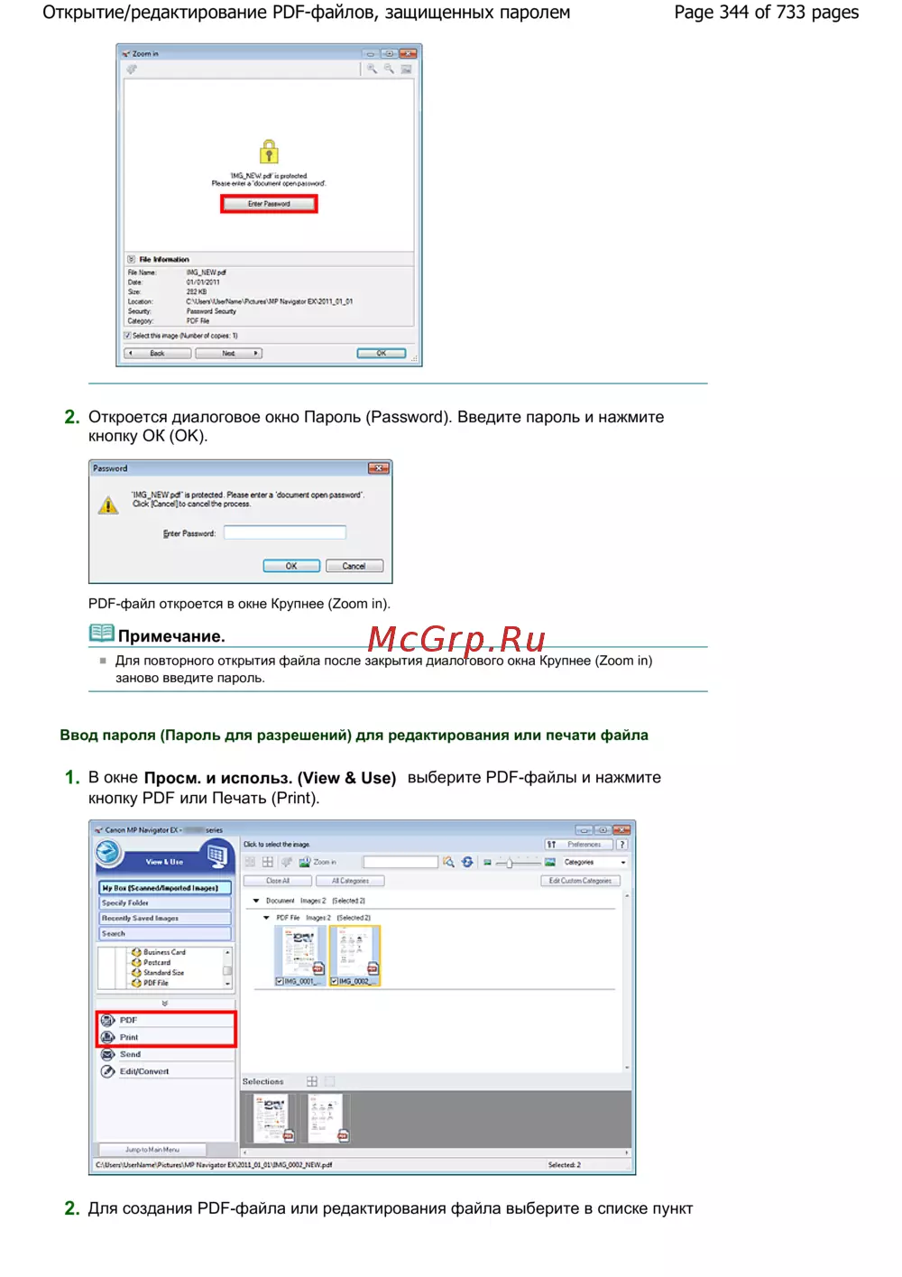 Page 344 of 733 pagesОткрытие/редактирование PDF-файлов, защищенных паролем