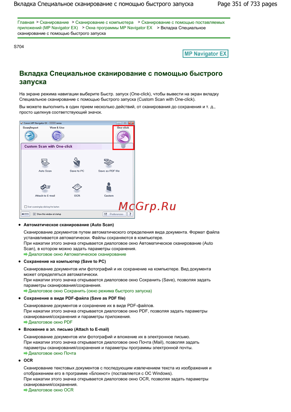 Page 351 of 733 pagesВкладка Специальное сканирование с помощью быстрого запуска