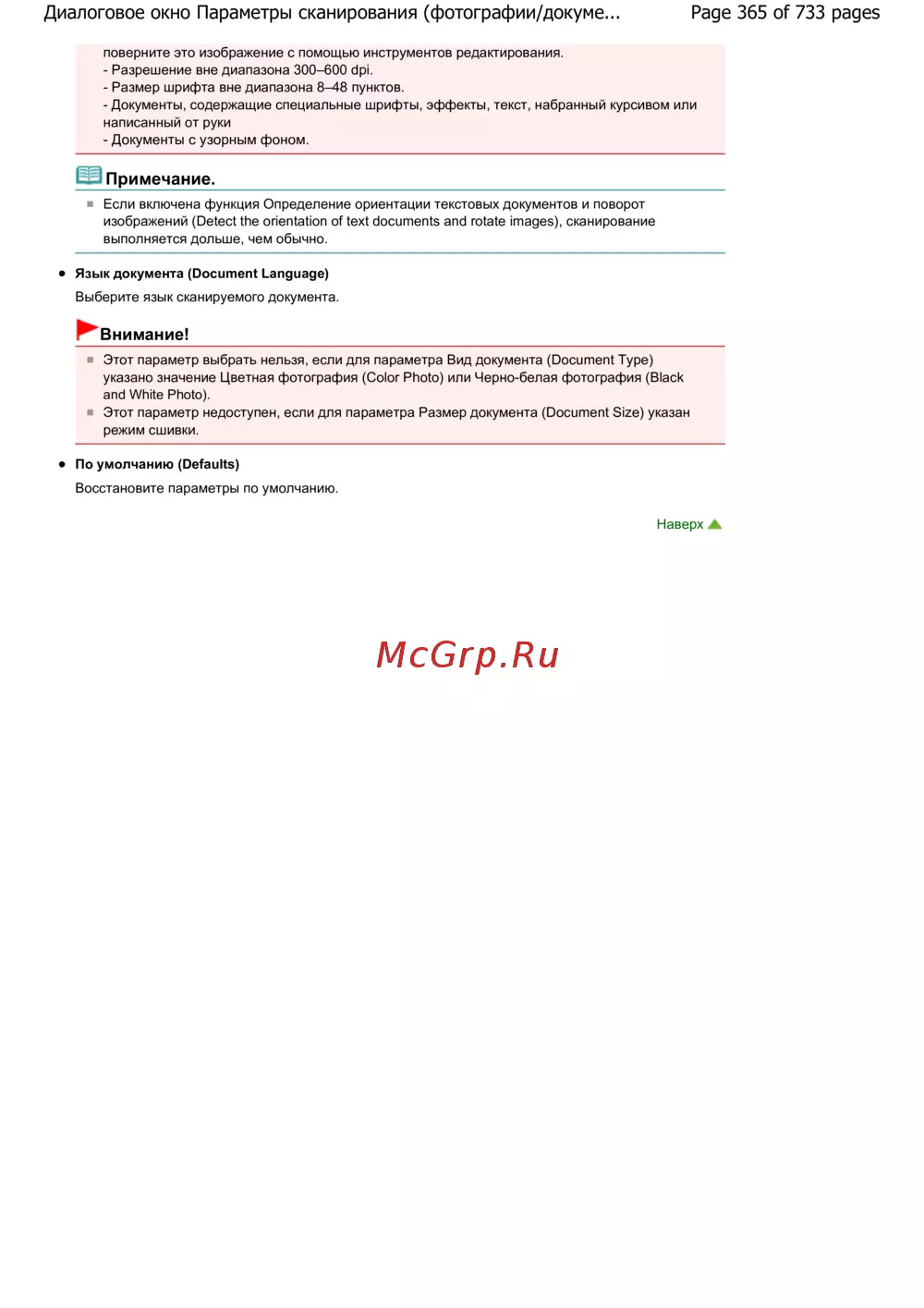 Canon Pixma MG2140 — рекомендации по настройке параметров сканирования документов [365/733]