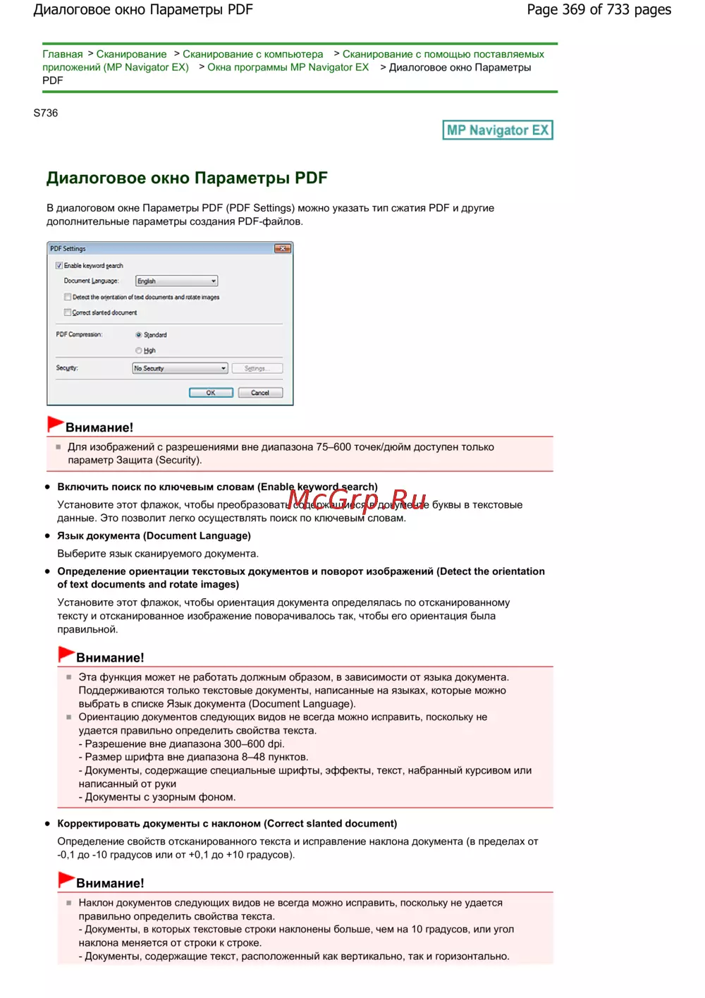 Canon Pixma MG2140 — настройки PDF: Сжатие и параметры сканирования документов [369/733]
