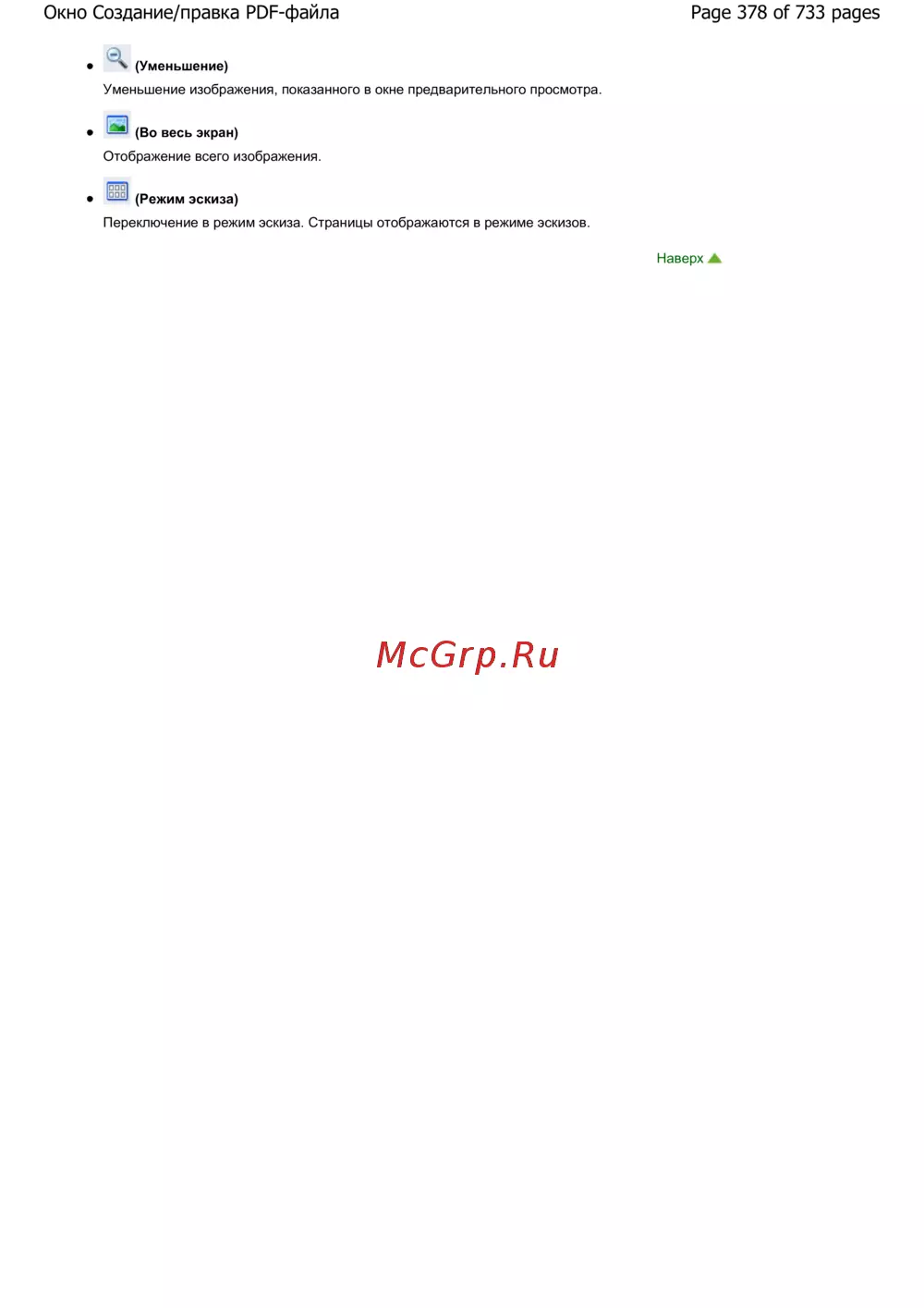 Page 378 of 733 pagesОкно Создание/правка PDF-файла