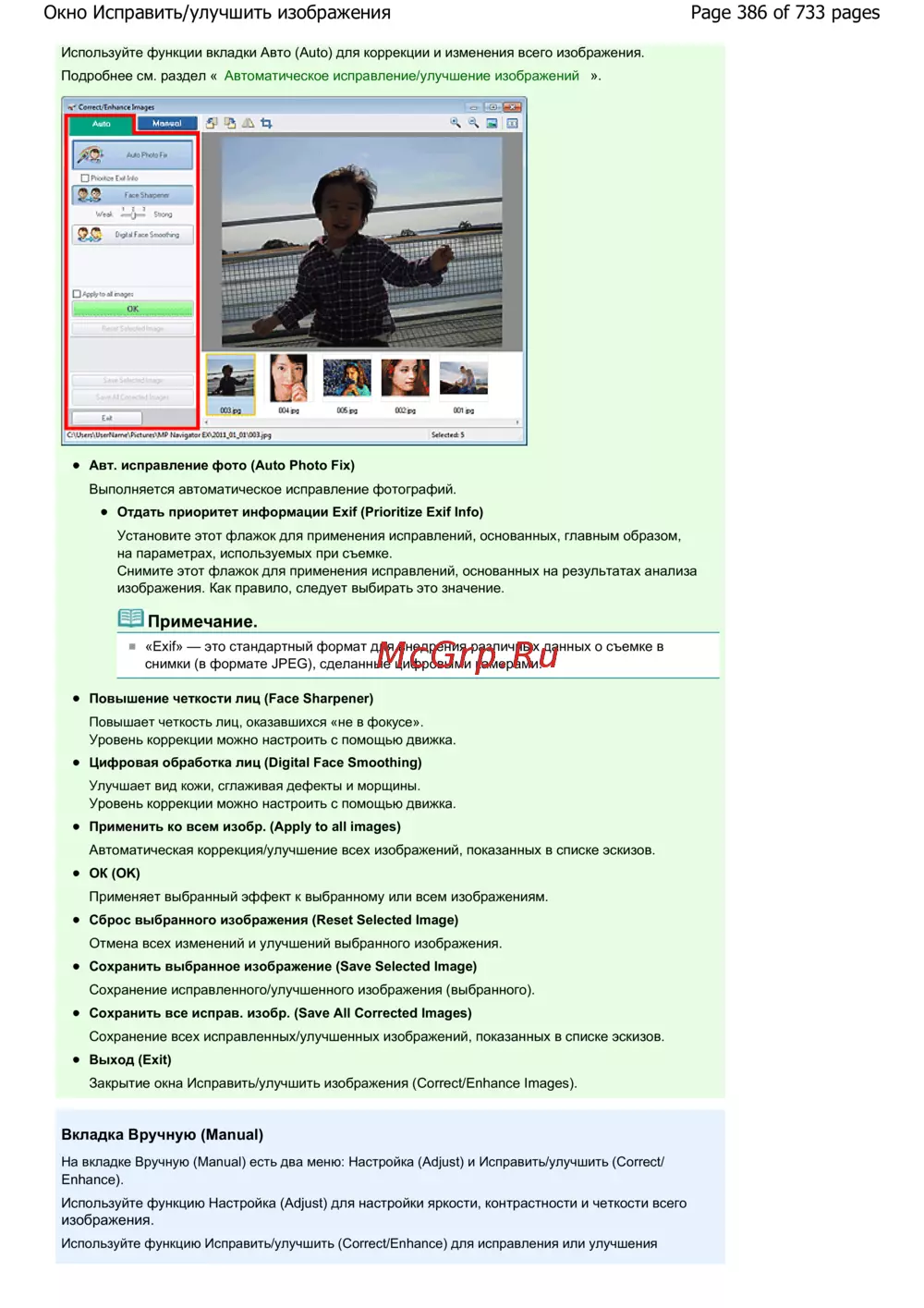 Page 386 of 733 pagesОкно Исправить/улучшить изображения