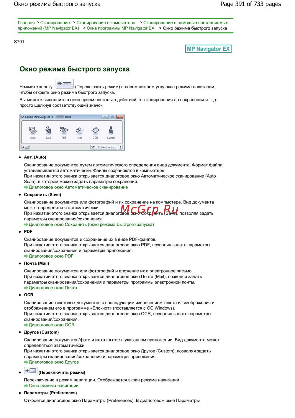 Canon Pixma MG2140 — сканирование документов с компьютера: режим быстрого запуска [391/733]