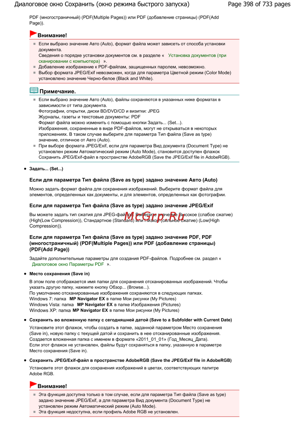 Canon Pixma MG2140 — как выбрать формат файла для сканирования и сохранения изображений [398/733]