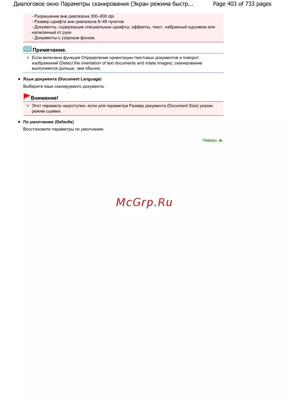 Page 403 of 733 pagesДиалоговое окно Параметры сканирования (Экран режима быстр...