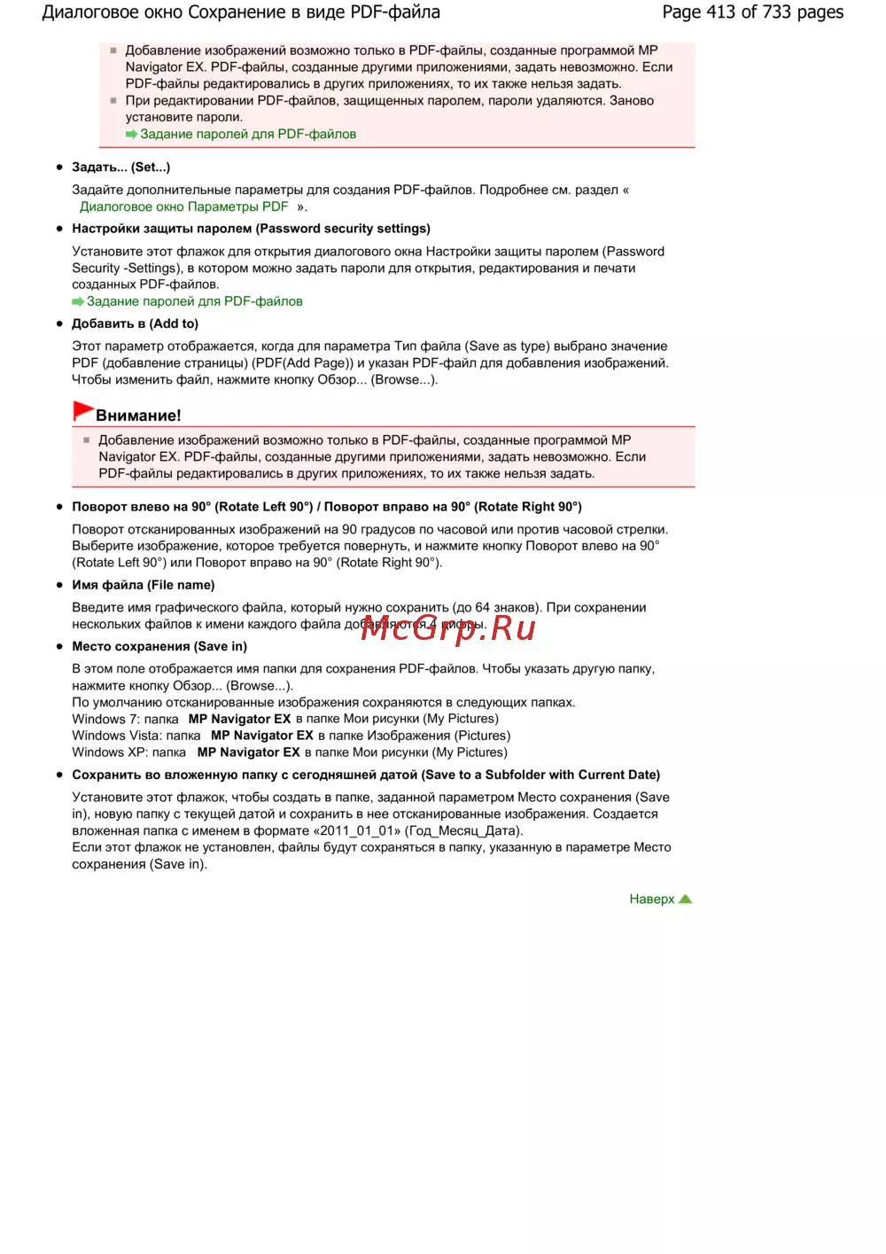 Page 413 of 733 pagesДиалоговое окно Сохранение в виде PDF-файла