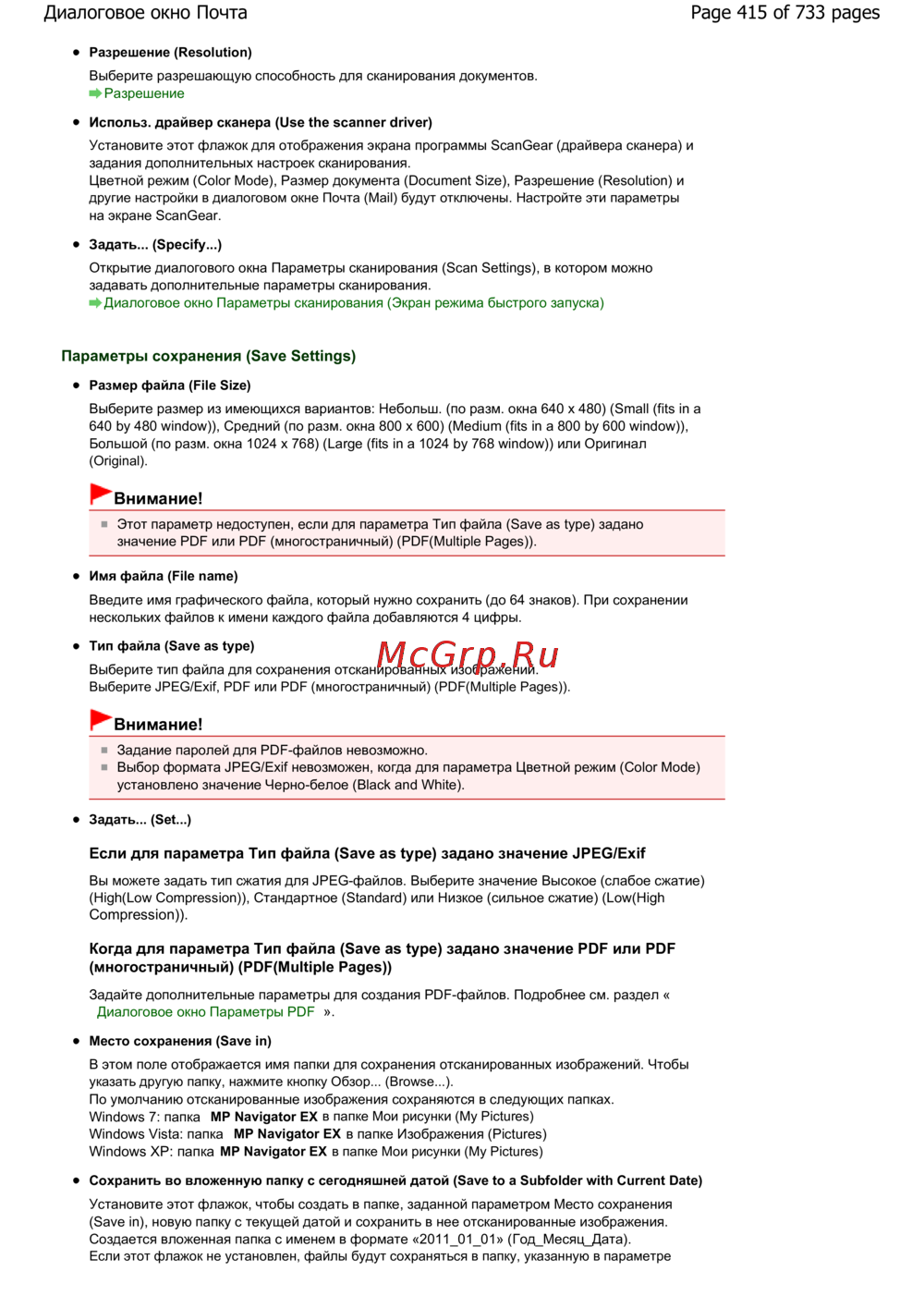 Canon Pixma MG2140 — настройки сканирования: разрешение, формат и параметры сохранения [415/733]