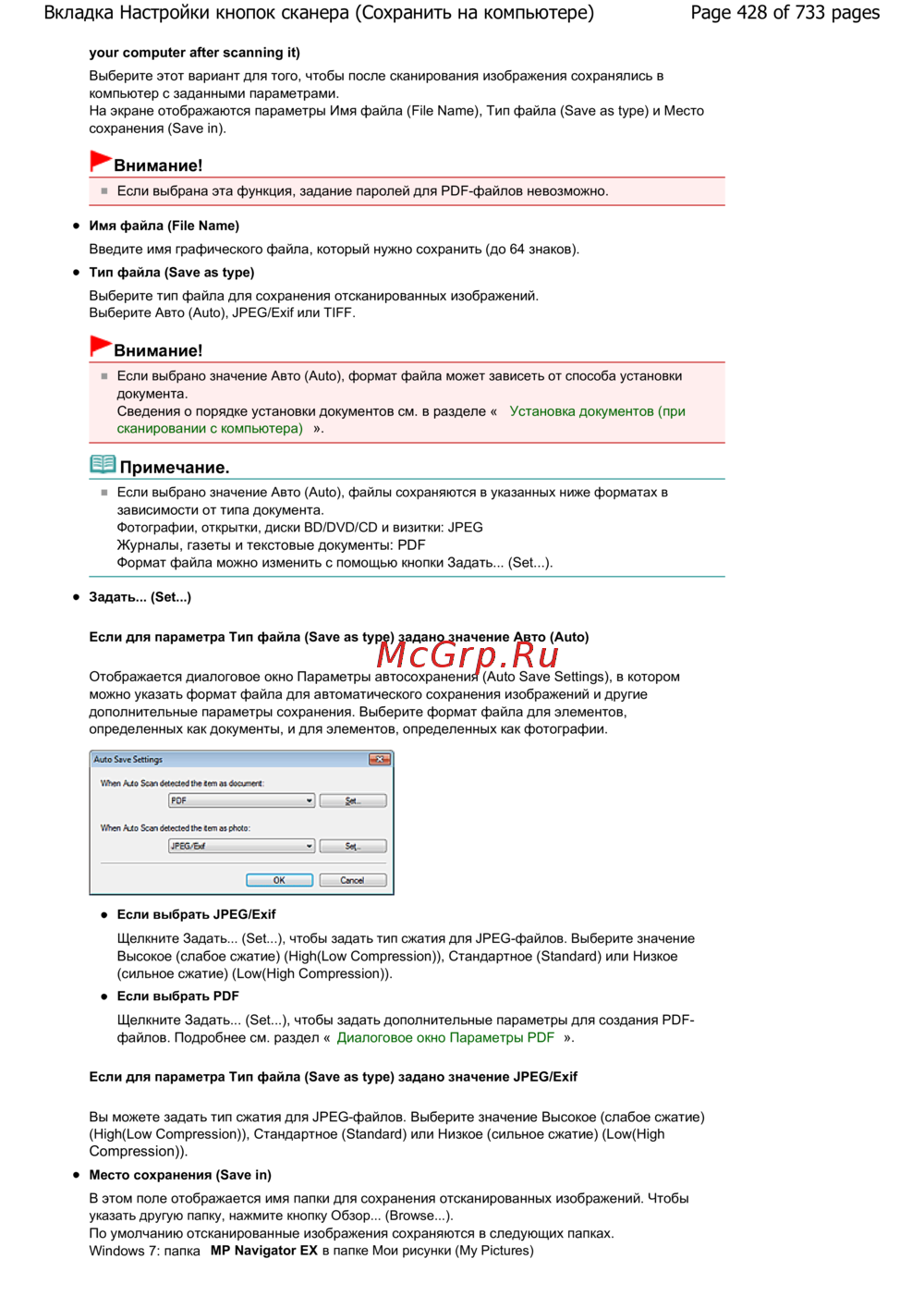 Canon Pixma MG2140 — настройки сохранения отсканированных изображений на компьютере [428/733]
