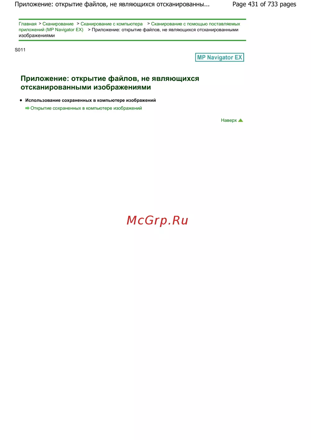 Page 431 of 733 pagesПриложение: открытие файлов, не являющихся отсканированны...