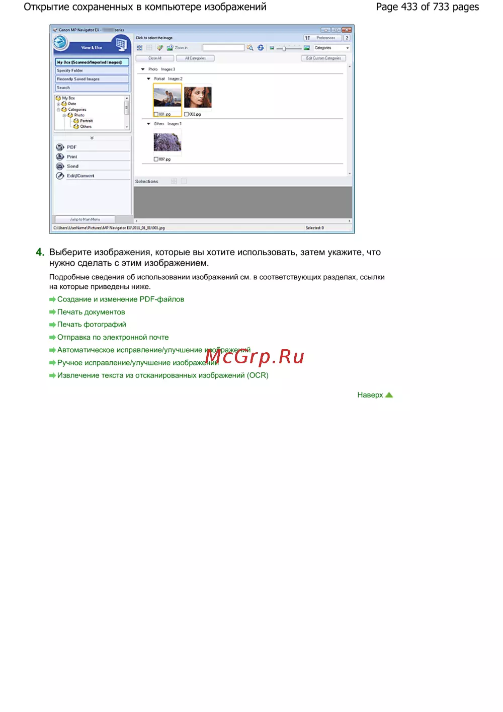 Page 433 of 733 pagesОткрытие сохраненных в компьютере изображений
