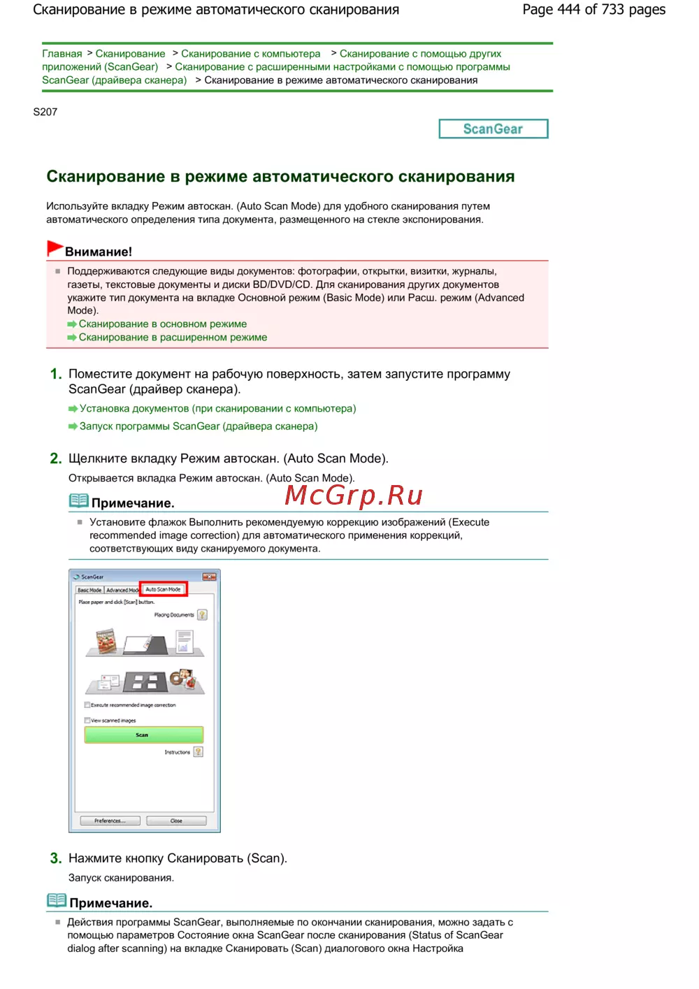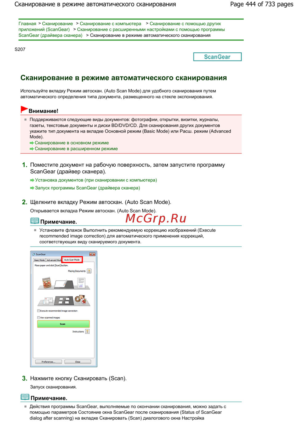 Page 444 of 733 pagesСканирование в режиме автоматического сканирования