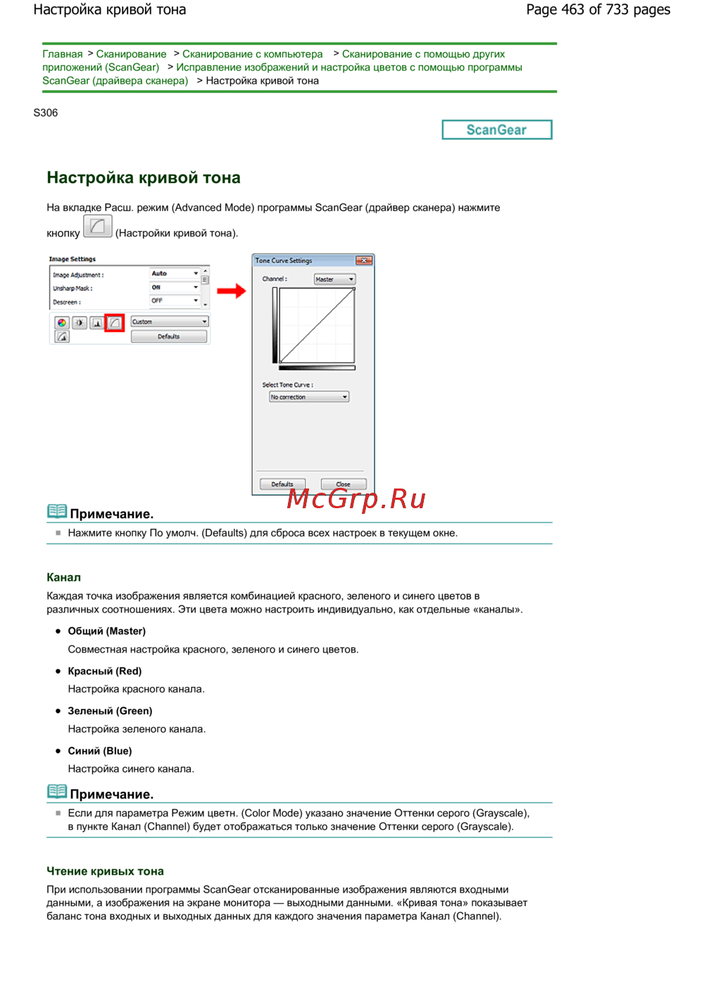 Canon Pixma MG2140 — настройка кривой тона в программном обеспечении для сканирования [463/733]
