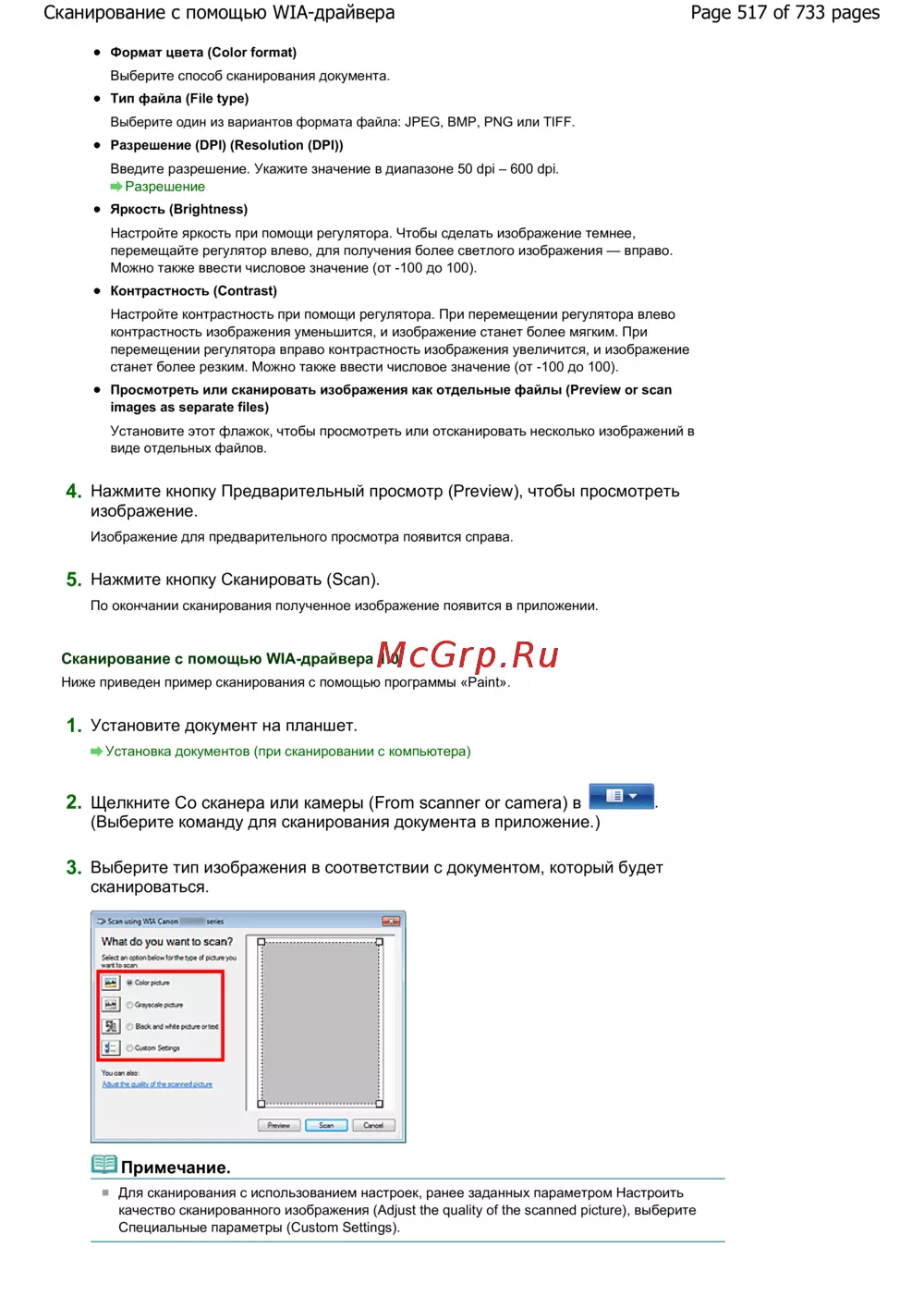 Page 517 of 733 pagesСканирование с помощью WIA-драйвера
