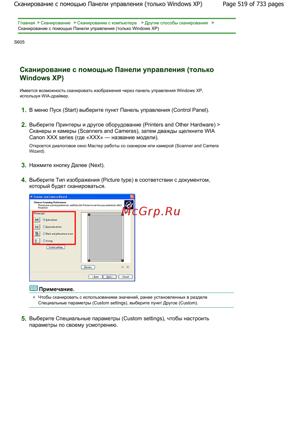 Page 519 of 733 pagesСканирование с помощью Панели управления (только Windows XP)