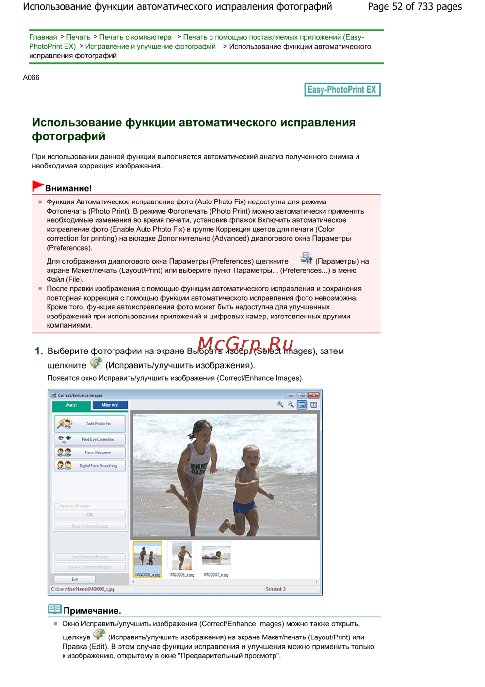 Page 52 of 733 pagesИспользование функции автоматического исправления фотографий