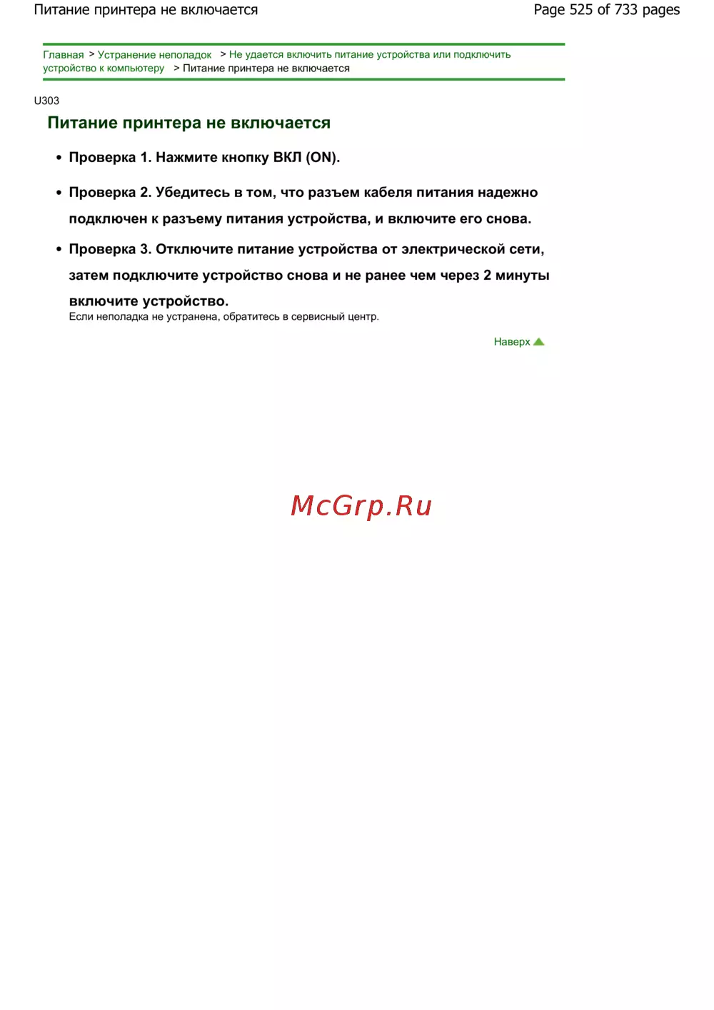 Page 525 of 733 pagesПитание принтера не включается