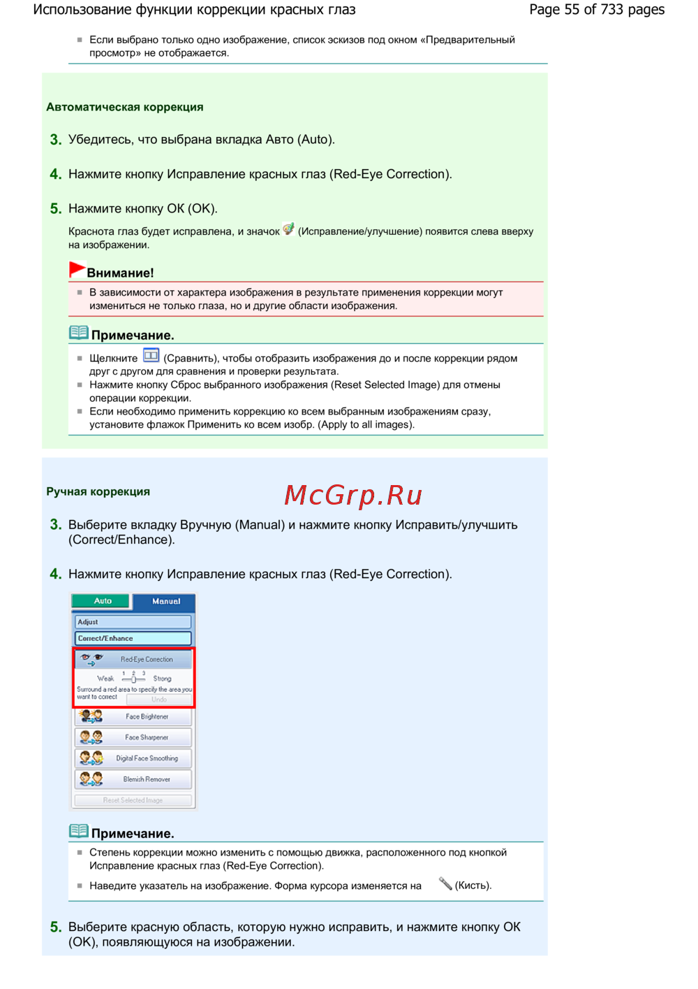 Page 55 of 733 pagesИспользование функции коррекции красных глаз