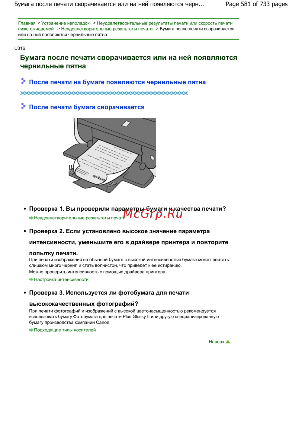 Page 581 of 733 pagesБумага после печати сворачивается или на ней появляются черн...