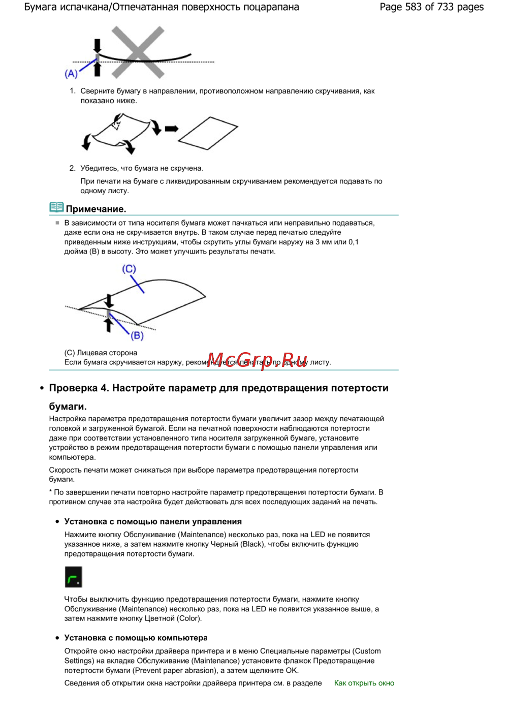 Canon Pixma MG2140 — советы по печати: предотвращение скручивания и потертости бумаги [583/733]