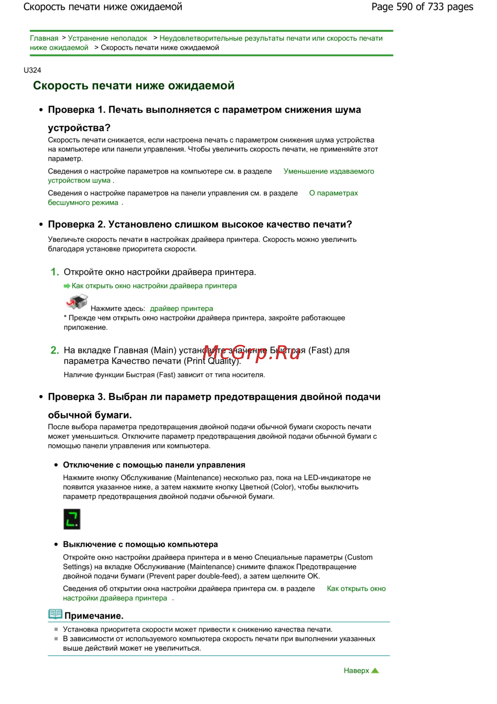 Page 590 of 733 pagesСкорость печати ниже ожидаемой
